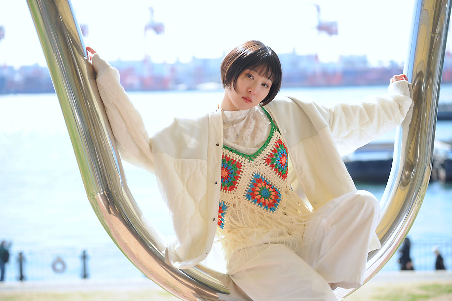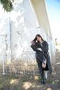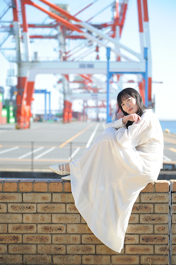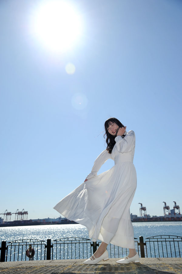 1:。 2:シャッターを1/30sに落とし、なびくコートで強い風を表現してみる。顔が動かないので成立している。 3:衣装が白黒。表現したい水面の燦めきも白黒で表現できるので思い切ってB/Wで。 4:南欧風の白の背景だからこそ黒い衣装が効く