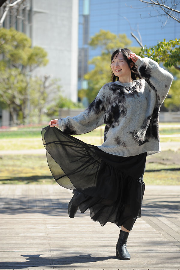 | 1:噴水工事中のためいつもなら撮れない絵。これで好きなように滝の水があればと無い物ねだり。 2:目線が外れた後に、すごく動きがあり表情もいい瞬間を捉えることが出来た。 3:冬の低い太陽を一緒に捉えて。PL入れるべきだったなと。風になびく裾、髪。くの字になった体躯。動きがあっていい。 4:伸びた脚で撮りたかったが人がいて。曲げても、垂れた裾との対象で構成的にはよかったかも。 福田晴香さん |