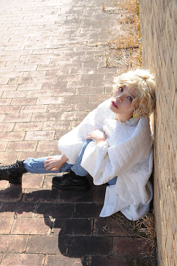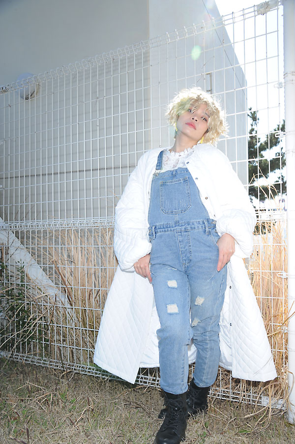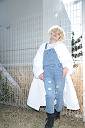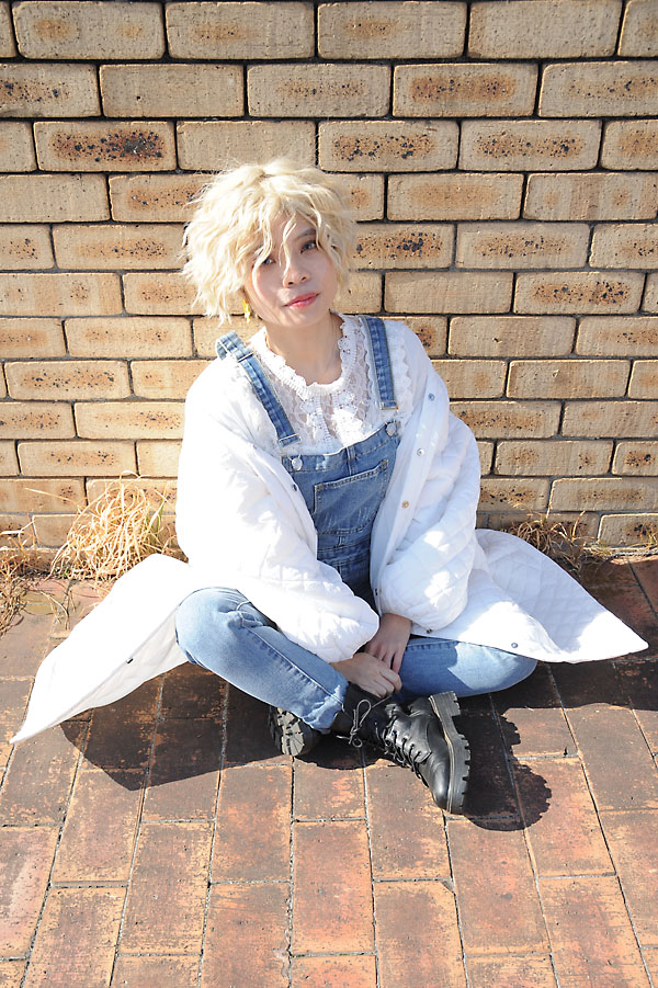 | 1:色々角度を変えてみたが撮りあぐねた結果真正面 光の斑が好き。 2:背景省略で画面一杯にアップ 爆発したカツラはティナターナーと思ったが、アップにしたらメグライアンに。(嫌いだったらごめんなさい) 3:どや顔のポーズがイメージ通りに。白衣のようにも見える…。 4:オーバーオールにはこんな座り方が似合う。 彩兎宇すずさん |